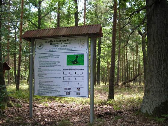 Im Verwaltungsgebiet der Oberförsterei Gubin liegen zwei Naturschutzgebiete: „Dębowiec" sowie „Uroczysko Węglińskie".