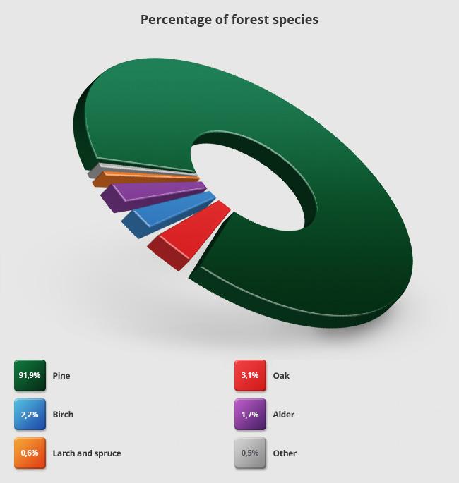 Within the area of Forest District Gubin, there are mainly coniferous forest sites with pine dominance. The average age of forests in the area is 57 years.